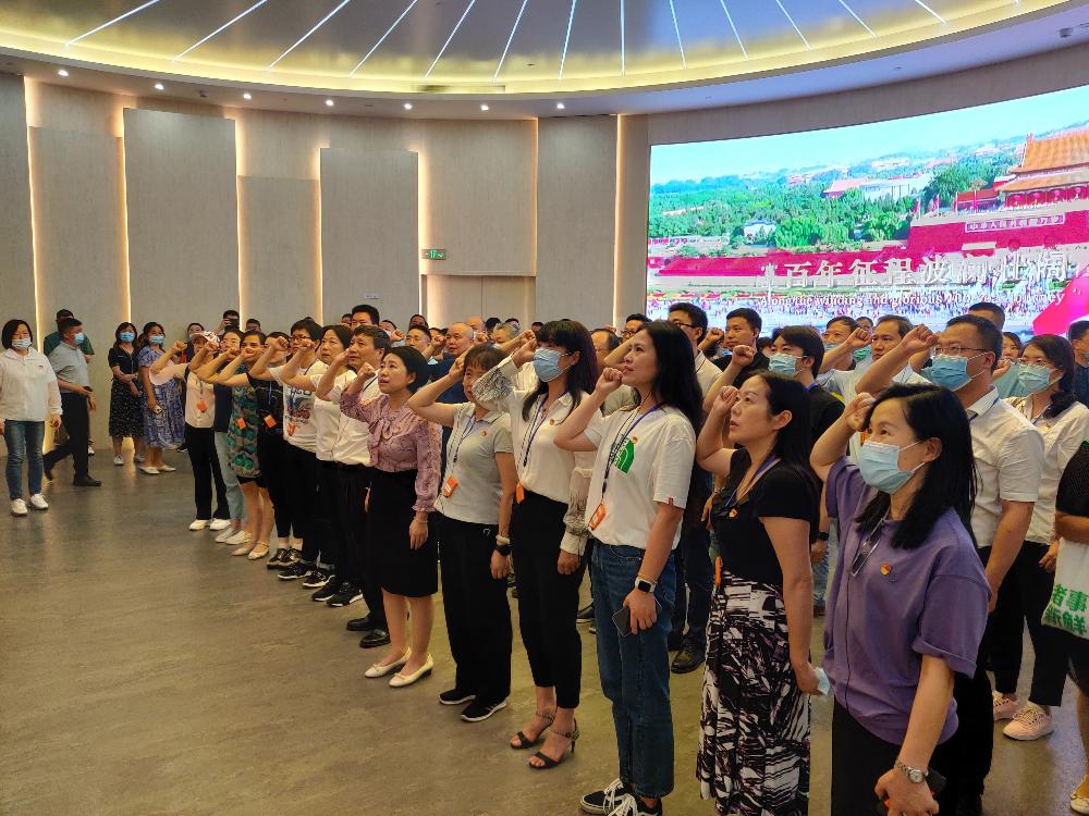百年榮光,照亮歷史和未來。在參觀中共一大會址紀念館期間,全體黨員面對鮮紅的黨旗,一起重溫入黨誓詞,鏗鏘有力的宣誓聲響徹大廳。