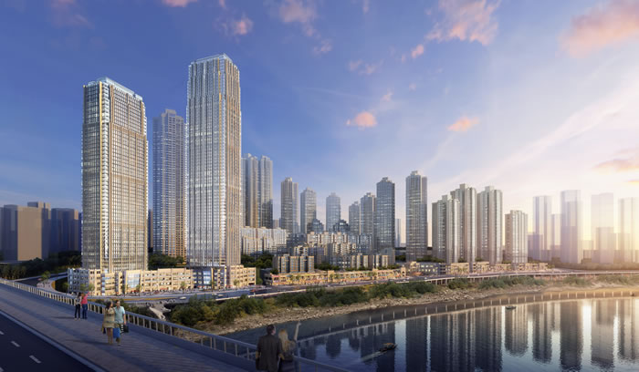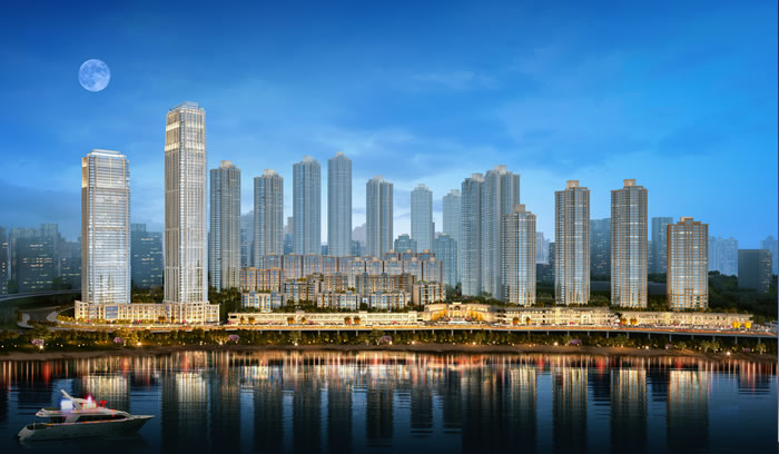 本工程建設地點位于重慶市江北區(qū)華新街,由恒大集團開發(fā)建設的集住宅、商業(yè)服務設施為一體的法式風格全景住宅小區(qū),由后排超高層住宅序列和中間一般高層住宅及前排濱江洋房組團共同構成肌理豐富層級分明的特色山地城市天際線。形成統(tǒng)一而富有變化的城市景觀,建筑布局在傾向于打造濱江景觀大盤的同時,亦注重大尺度的內(nèi)部景觀塑造,力求獲得最好的社會效益。