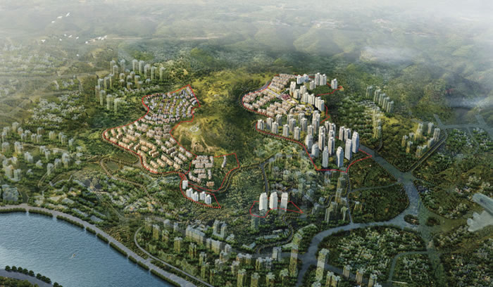 保利·江上明珠位于重慶市江北區(qū)至高點(diǎn),環(huán)繞鴻恩寺森林公園,南臨嘉陵江,因此應(yīng)起到提升嘉陵江兩岸乃至整個重慶城市形象的作用。本地塊用地長條不規(guī)則形狀,東西長約391米,南北最寬處約215米,地勢北低南高,總高差約25米。集花園洋房、商業(yè)、車庫等各類配套的高檔住宅小區(qū)。