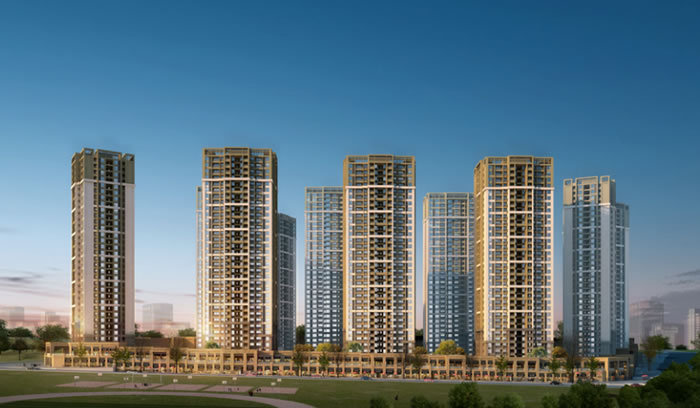 項目地處大渡口未來城市核心西濱路中段,占地約30萬m2,總建面約100萬m2。項目集品質(zhì)高層、洋房,濱江商業(yè)街以及自建幼兒園、小學、中學為一體,全面升級大渡口高端人居新格局。項目一期占地7.3萬方,總建筑面積為34萬方;平面布局上,根據(jù)小區(qū)場地呈平行四邊形的特點,規(guī)劃設計中橫向設計一條視線走廊。根據(jù)小區(qū)地勢南北高,中間低洼的特點,整體布局采用南北大圍合中間塔式高層點狀布置的方式,圍合出一個大庭院。利用地勢高差,將建筑群劃分為西高東低的兩個居住組團。