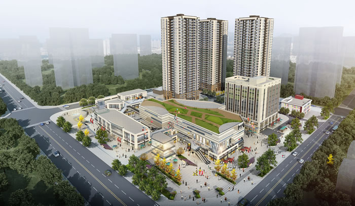 本項目功能復雜用地緊張,整體功能有高層住宅、幼兒園、臨街商業、集中商業、超市、電影院以及高層公寓,以住宅最大化的內部庭院景觀為前提,集中商業錯落布置于城市展示面以及交通便利處。場地內部高差關復雜,地塊南北高差6米,東西高差10米,東西處集中商業錯層布置,通過下沉庭院整合地形,形成雙首層空間,南北通過場地自然放坡,在商業處集中通過踏步扶梯解決上下,局部單層商業層層錯落,形成凹凸變化,錯落有致的,南北緊密聯系的居住、商業城市組團。