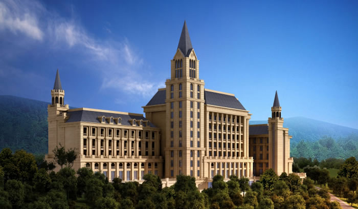 本酒店立面設計采用法式建筑風格,用優(yōu)雅線條勾勒出經典之美。在建筑外觀極度考量,既從整體層面對建筑進行把握,又善于在細節(jié)的雕琢上下功夫,采用對稱造型,營造出一種恢弘的氣勢。普蘭色孟莎式屋頂統(tǒng)領建筑整體,上部平緩,下部陡直,屋頂上鑲嵌精致的老虎窗。外墻采用淺暖色石材貼面,細節(jié)處理上運用了法式廊柱、雕花、線條,令整座建筑充滿層次感、立體感。法式建筑風格之美將高端階層所追求的高貴居所表達的淋漓盡致,給人歷久彌新的價值感,宛如屹立于城市間的藝術珍品。