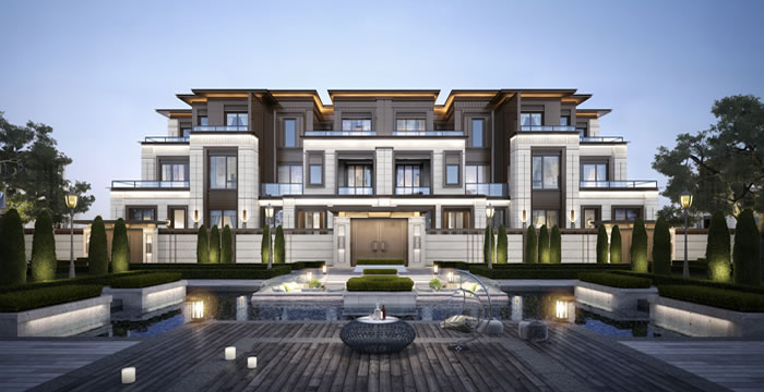 2.通過BIM精細(xì)化設(shè)計對疊拼和聯(lián)排別墅的外立面進(jìn)行建模分析,充分表達(dá)了立面造型和線條的細(xì)節(jié),并復(fù)核出機(jī)電管線對立面效果的影響,從而提出優(yōu)化建議供業(yè)主方參考以便做出修改決策。